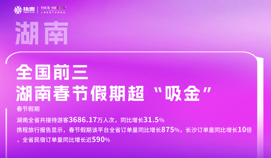 春节假期,湖南全省共接待游客3686.17万人次,同比增长31.5%。携程旅行报告显示,春节假期该平台全省订单量同比增长875%,长沙订单量同比增长10倍,全省民宿订单量同比增长近590%。