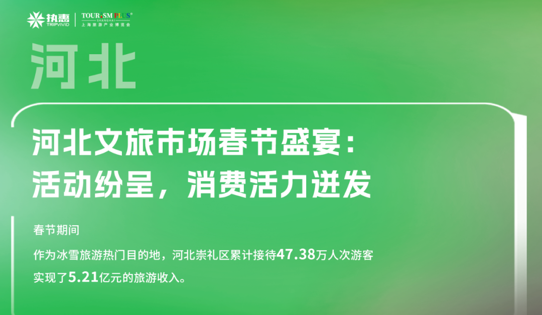 值得一提的是,崇礼区作为冰雪旅游的热门目的地,春节期间接待了高达47.38万人次的游客,并实现了5.21亿元的旅游收入。这不仅彰显了崇礼在冰雪旅游领域的吸引力,也进一步推动了河北文旅市场的繁荣发展。
