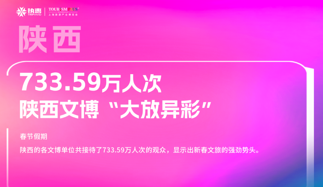 同时,在春节假期期间,陕西的各文博单位共接待了733.59万人次的观众,显示出新春文旅的强劲势头,其中“西安年·最中国”活动更是吸引了大量游客,成为新春文旅的亮点。
