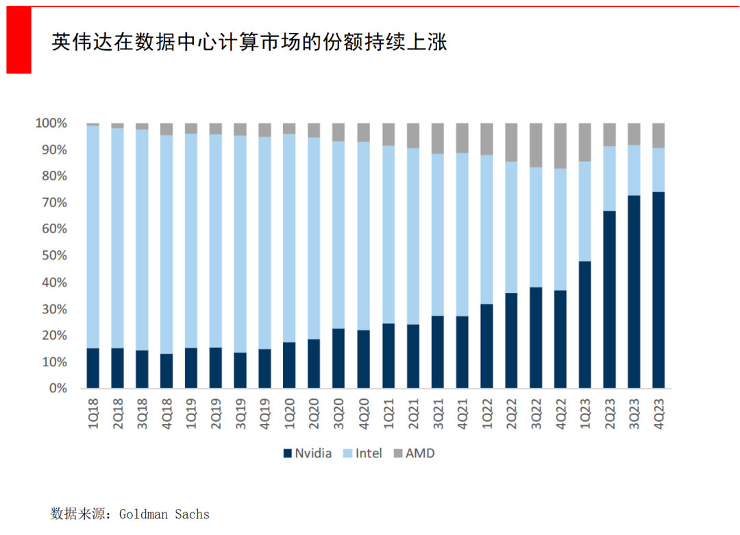 这两道护城河的存在,使得竞争对手即便造出了更好的硬件,也仍然是不够的。虽然英特尔和AMD都已加速推出自家AI芯片产品,以及英伟达的大客户亚马逊、谷歌和微软都在开发自主设计芯片,但英伟达仍然稳固地主导着AI芯片,因为它不仅能提供最好的芯片,还有最好的芯片网络和最好的软件,这使得任何眼红这块市场的竞争对手,都需要在这三个方面击败它,而在当下这几乎是不可能完成的任务。