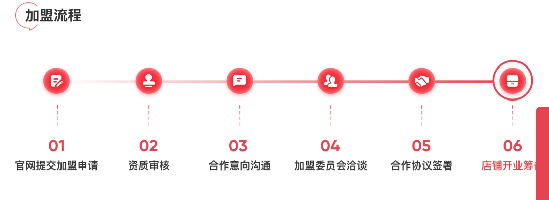 今天,小食代浏览其官网发现,“加盟合作”已被置于显眼位置,该栏目下列出了加盟流程、加盟支持和对加盟商的要求。对此,小食代今晚致电其加盟热线查询,客服仅表示需先扫描官网二维码填写申请表单进行资质审核,并未透露更多细节。