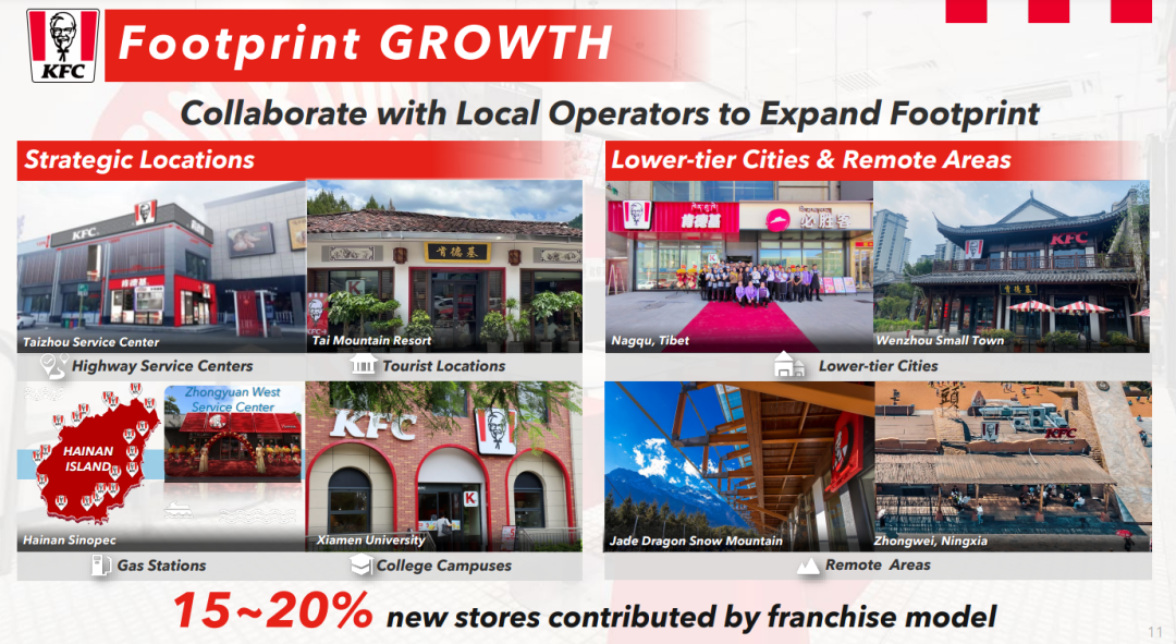 百胜中国早前也表示,肯德基品牌计划在未来三年保持每年1200家以上净新增店数,其中加盟店占比将达15%至20%。