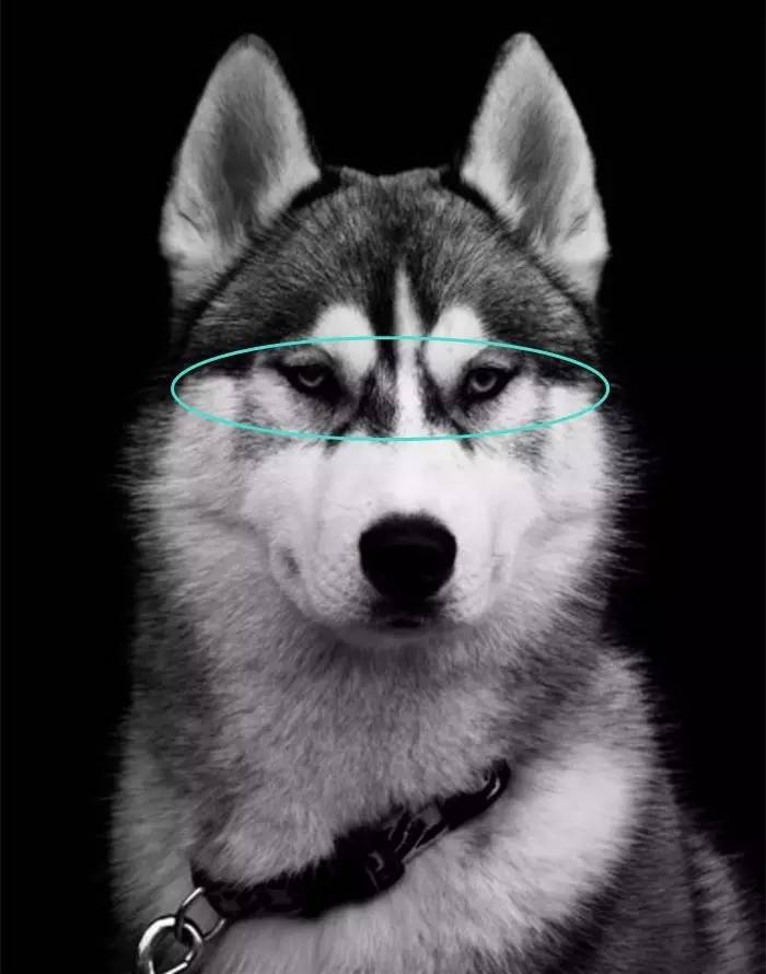 二哈虽然脸部以白色居多,但是眼睛附近却有一圈黑毛,这显得二哈在某些角度看起来眼睛很小