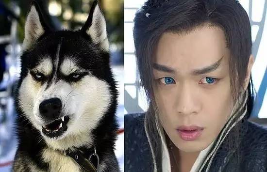 撞脸最成功的图就是这个了,张若昀和二哈撞脸的精髓就是那“邪恶”的眼神