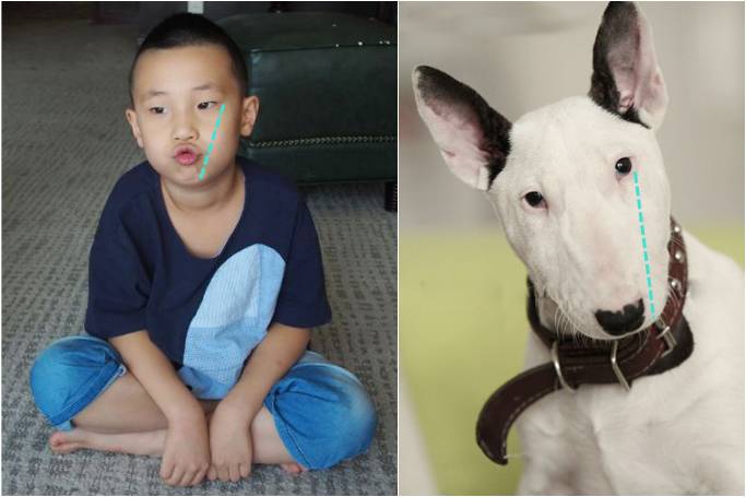 直到斗牛梗的出现,大竣和斗牛梗眼睛到下巴的距离