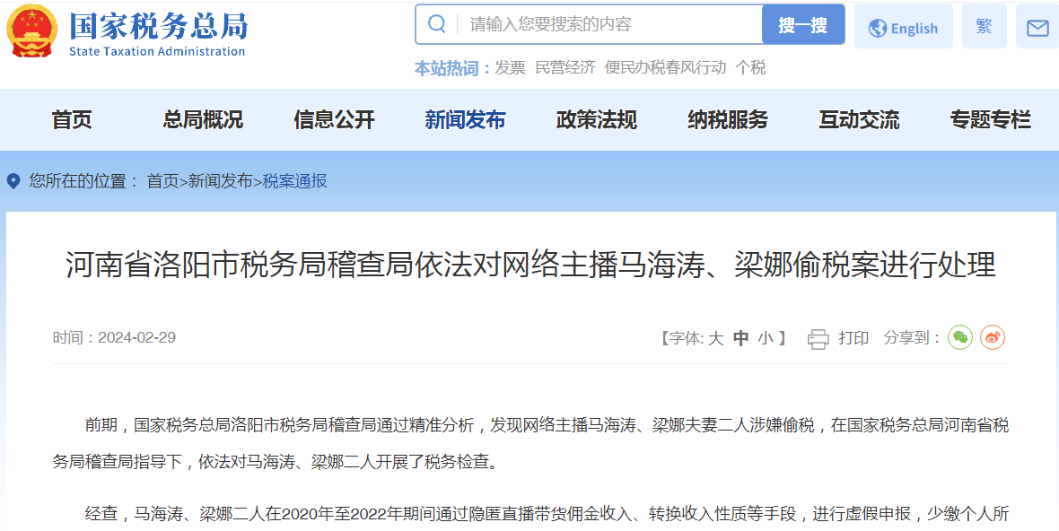 01 年带货销售额近亿,小马哥夫妇因偷税被罚317万元