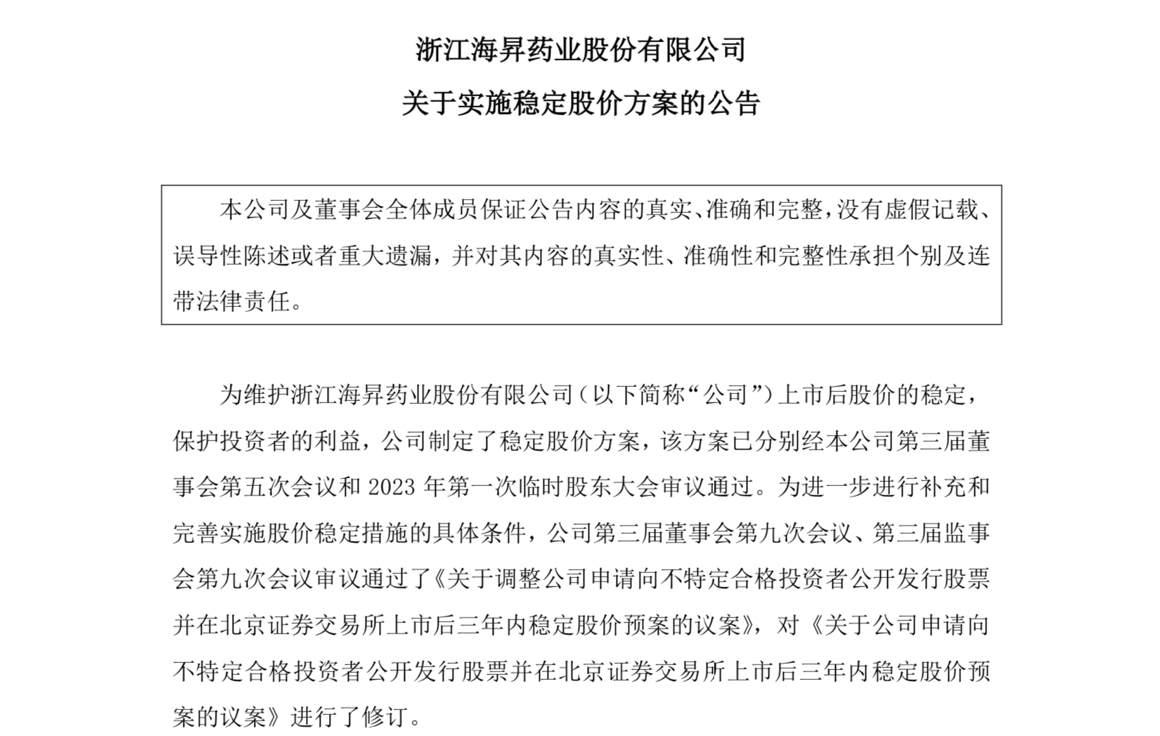 海昇药业于今年2月2日登陆北交所,发行价格为19.90元/股,自2024年2月5日起至2024年2月26日,海昇药业股票出现连续10个交易日的收盘价均低于上市发行价格。因此,已触发稳定股价措施启动条件,2024年2月26日为触发日。