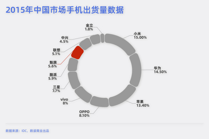 这份报告中,魅族成为最亮眼的厂商。只用了一个多季度就超越了2014全年的销量。当年三季度,魅族出货797万部,冲到第7位,只比OPPO和vivo少了约1.5个百分点。