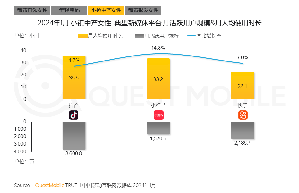 4.2 通过社交媒体分享生活成为一种常态,小镇中产女性在抖音、快手、小红书平台中的使用时长增长