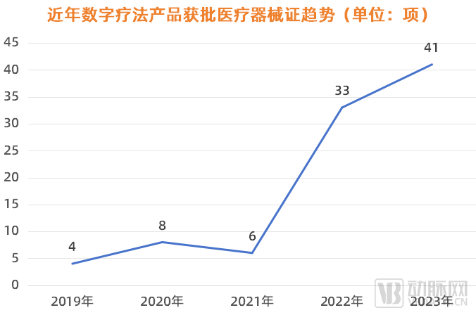 数字疗法在2023年继续实现突破,去年全年共有41项数字疗法产品获批,主要集中在治疗精神/神经领域、呼吸治疗领域、眼科及术后/运动康复领域等。