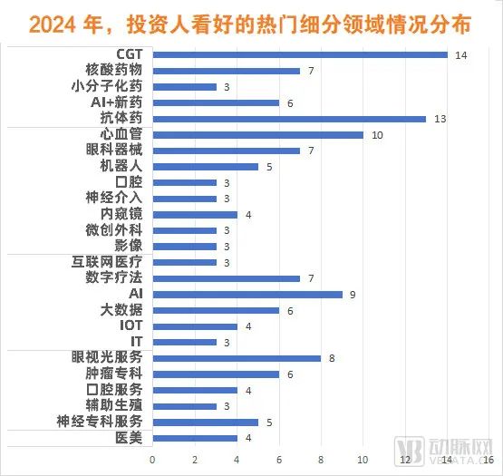 基于上述逻辑,动脉网结合投资人的观点,将从生物医药、创新器械、数字医疗、医疗服务四大板块分别论述但当下及后续一段时间投资机构们重点关注的细分赛道和背后的逻辑。