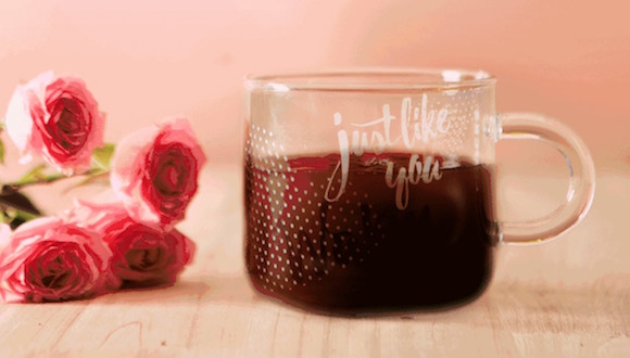 当褐色咖啡缓缓倒入,杯身突显出“爱的密码”。