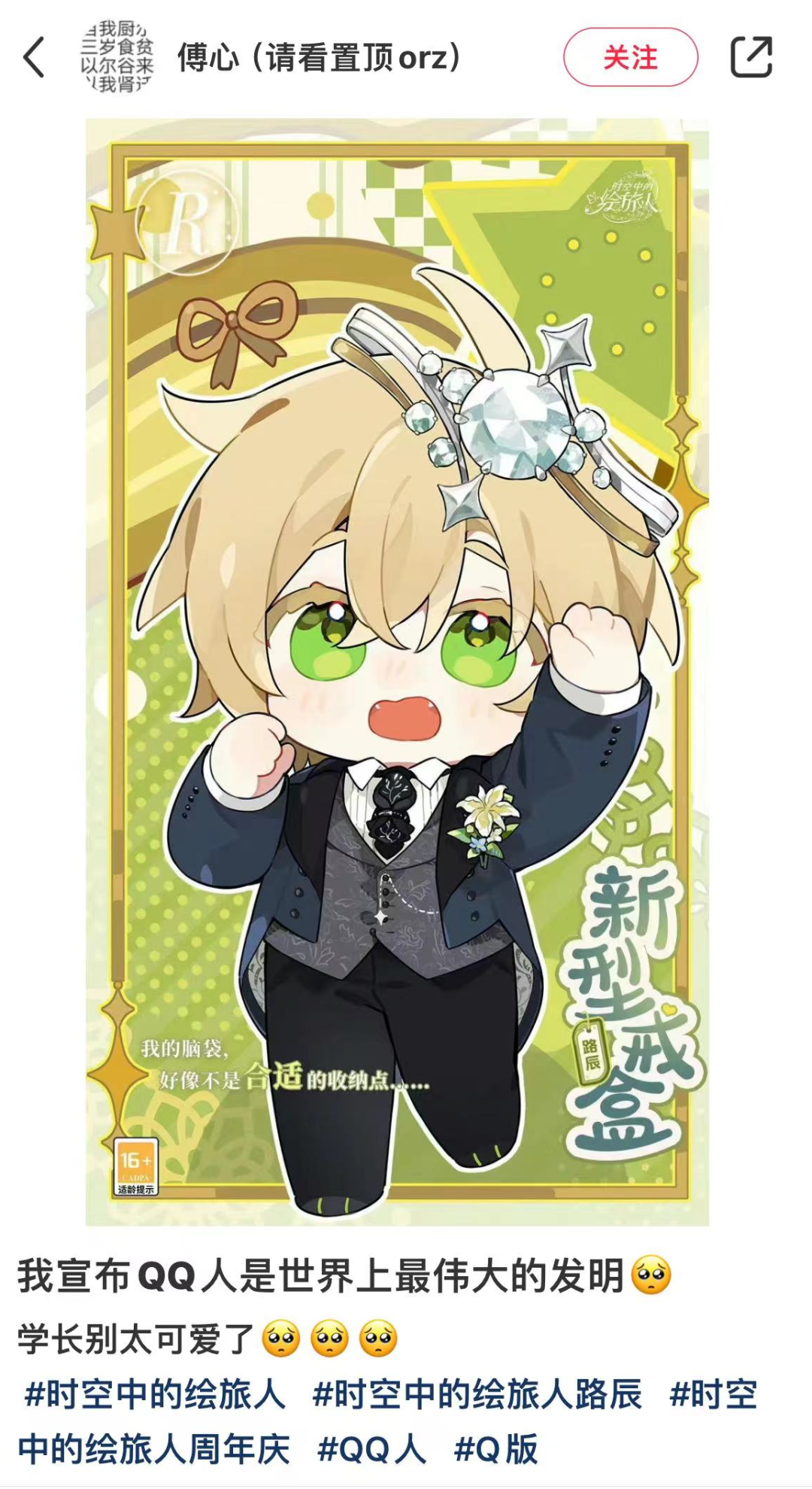 市面上热门国产乙游男主都有着自己的Q版形象,某种意义上QQ人就是各家男主的“二重身”,同样会出现在游戏宣发、内容更新等环节,对游戏长期运营有着重要意义。