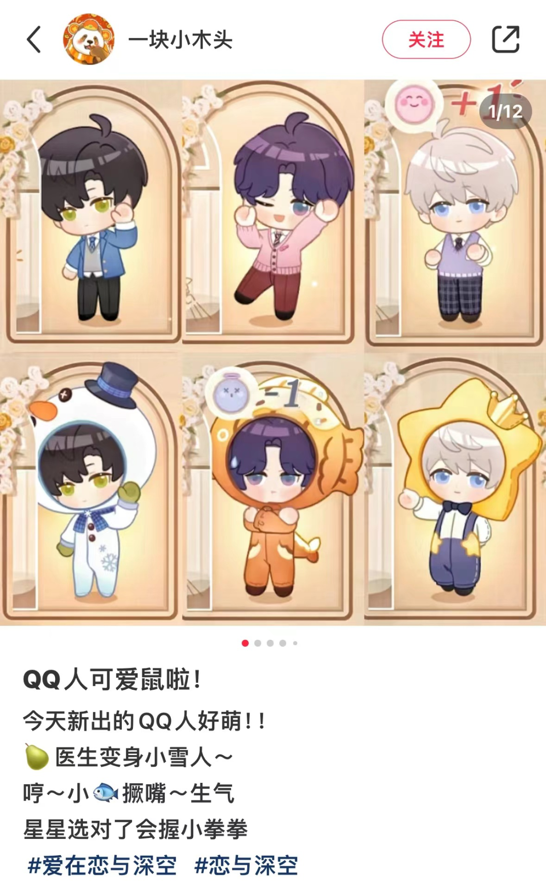 你能想象《恋与深空》三位男主用原建模跳《酒醉的蝴蝶》吗?又或想象一下这三位成年男性搭配情人节那头套装扮?然而,这些要素叠加在QQ人身上就变得合理起来,玩家评论甚至会隐隐透着一股“我家有儿初长成”的疼爱感。