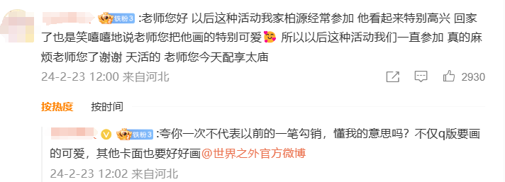 从心理学层面分析,女性玩家对于角色本身和QQ人的感情的确有所差异,后者圆润幼态的形象更容易让人生出照顾、关怀等感情。就像上一秒为男主卡面怒火直指官方的《世界之外》玩家,下一秒见到QQ人也会先夸“宝宝可爱”。乙游能够持续吸引玩家本就在于满足其情感需求,角色与QQ人恰恰能达成双管齐下,提供恋爱体验,也让玩家感到被需要、被依赖。