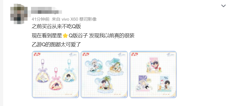 眼下,QQ人成了乙游维系玩家黏性的一种重要手段。基于游戏角色原有形象和故事剧情设计出来的QQ人角色,能与玩家快速产生情感连接,且频次相对较高的造型更新能维持游戏在玩家间的热度和影响力。不仅如此,QQ人还能为游戏运营提供丰富的形象储备,基于Q版造型可展开的商业开发也相当多样。而如果要问这项策略是否成功,玩家们早已经用“快点出谷!”回答了一遍又一遍。