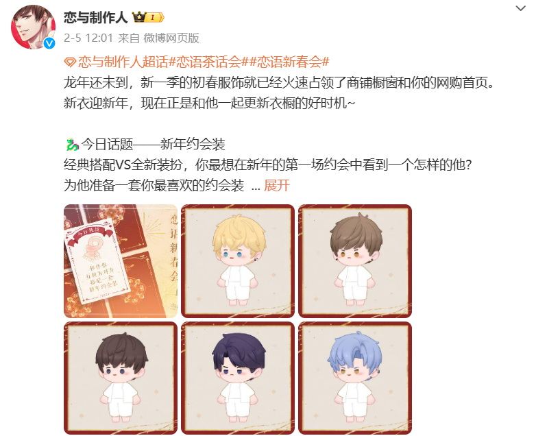 不过QQ人的主要任务还是展现角色可爱的一面。此前《恋与制作人》角色新卡面因画面过于火辣而登上热搜,QQ人则贯彻可爱到底,“荤素搭配”让人不得不感叹“恋与过年吃得真好”。