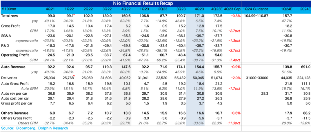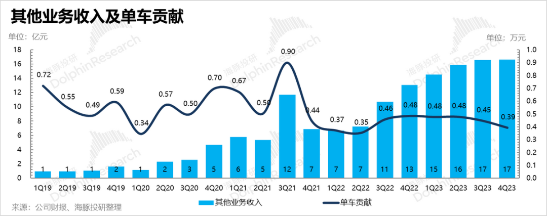 而本季度毛利率仅有7.5%,明显低于市场预期10.1%,本季度不仅汽车业务低于市场预期,其他业务的亏损进一步加重,其他业务毛利率从三季度的-23.8%环比降低10%至四季度-33.6%,可能由于换电权益的解绑退出。