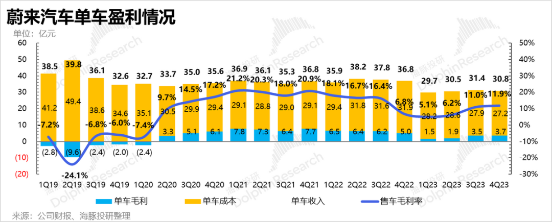 作为每次放榜时候最为关键的指标,我们先来看看蔚来的卖车盈利能力。