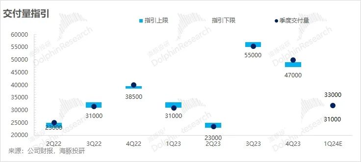 在单车收入因为老款折扣预期下行时,销量指引也相比23年四季度销量环比滑落34%-38%, 海豚君预计今年一季度毛利率将大幅度下行。