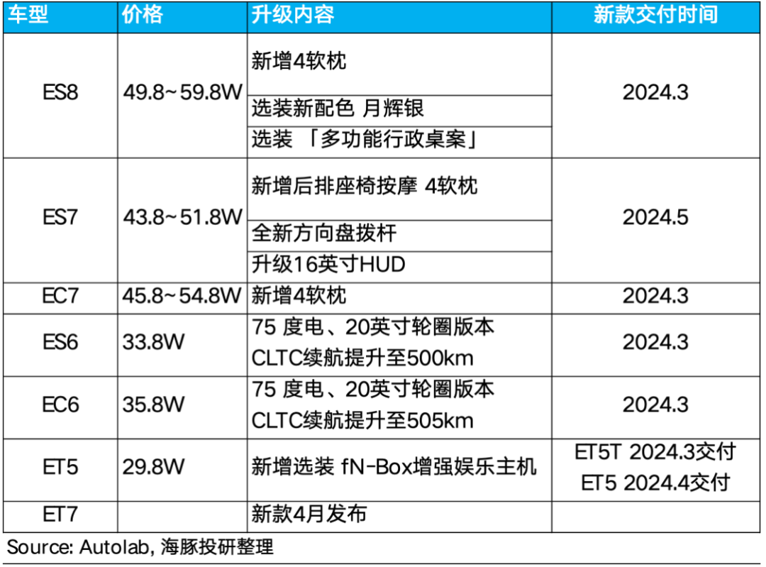 但主要是从自身产品定调来看,蔚来一直强调不参与价格战,目前发布的换新款与理想也是一个思路,新款起步价不下行。
