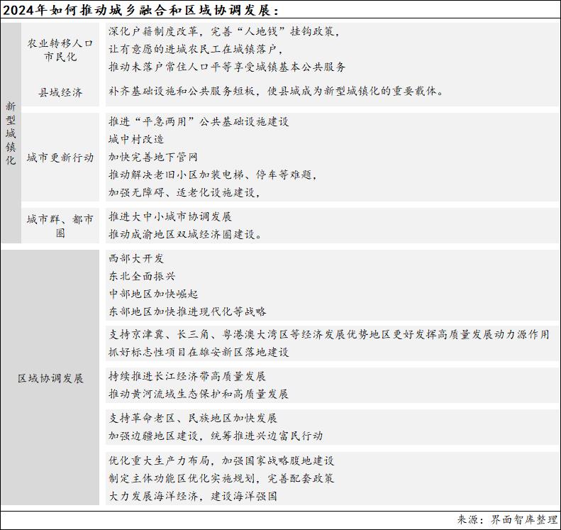 九是新增“城乡融合和区域协调发展”作为一项重点工作。2023年政府工作任务中没有提到城乡融合,有关区域发展的内容也比较少,但在当年的中央经济会议上已将其单独列为重点之一。这项任务其实意在释放我国经济发展洼地所蕴藏的增长潜力。城乡融合和区域协调发展,不仅能在全国层面稳定总需求,也有利于发挥地区比较优势,特别是提升东北和中西部承接产业转移的能力,也有利于优化生产力布局。