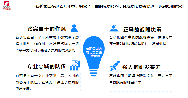 优势一:石药集团保持着踏实肯干、吃苦耐劳的企业文化;