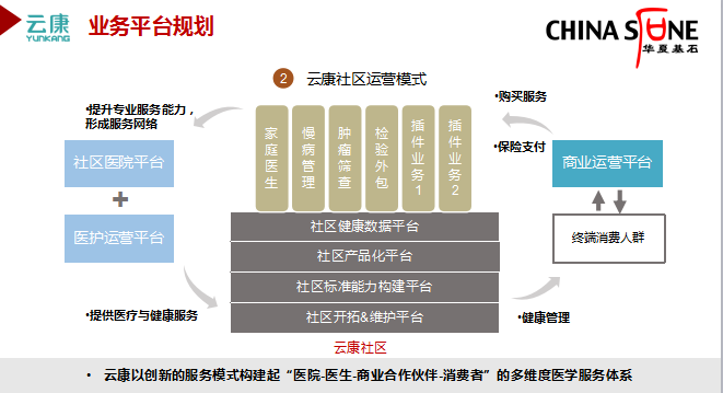还有一个值得关注的,是我们的长期战略客户云康集团。云康建立的医疗和大健康服务平台和体系,都是值得我们去研究的。这种商业模式代表了医疗和大健康未来的发展方向。