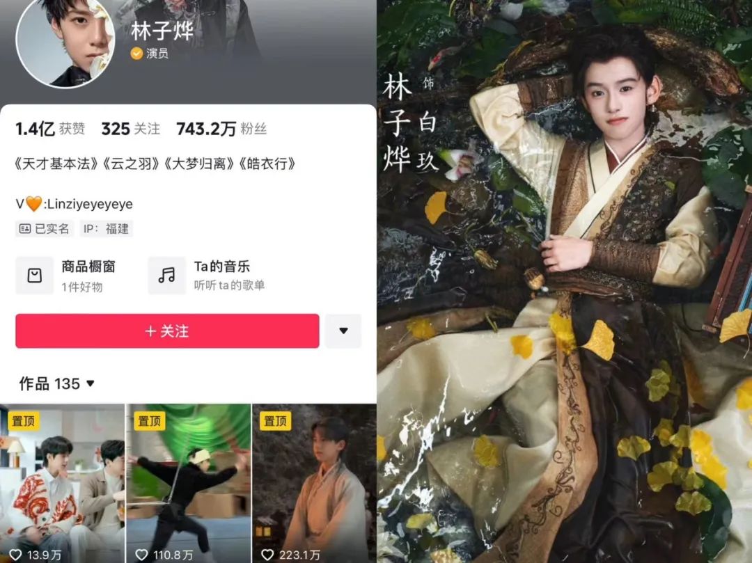 去年在《云之羽》里,因为“雪童子”一角给观众留下深刻印象的林子烨,抖音粉丝超700万,个人话题播放量超41亿。曾经签约于胡歌参股的斯年影视,后来被爱奇艺的超级向上收入囊中。所以,紧接着又与郭敬明合作了爱奇艺剧《大梦归离》。