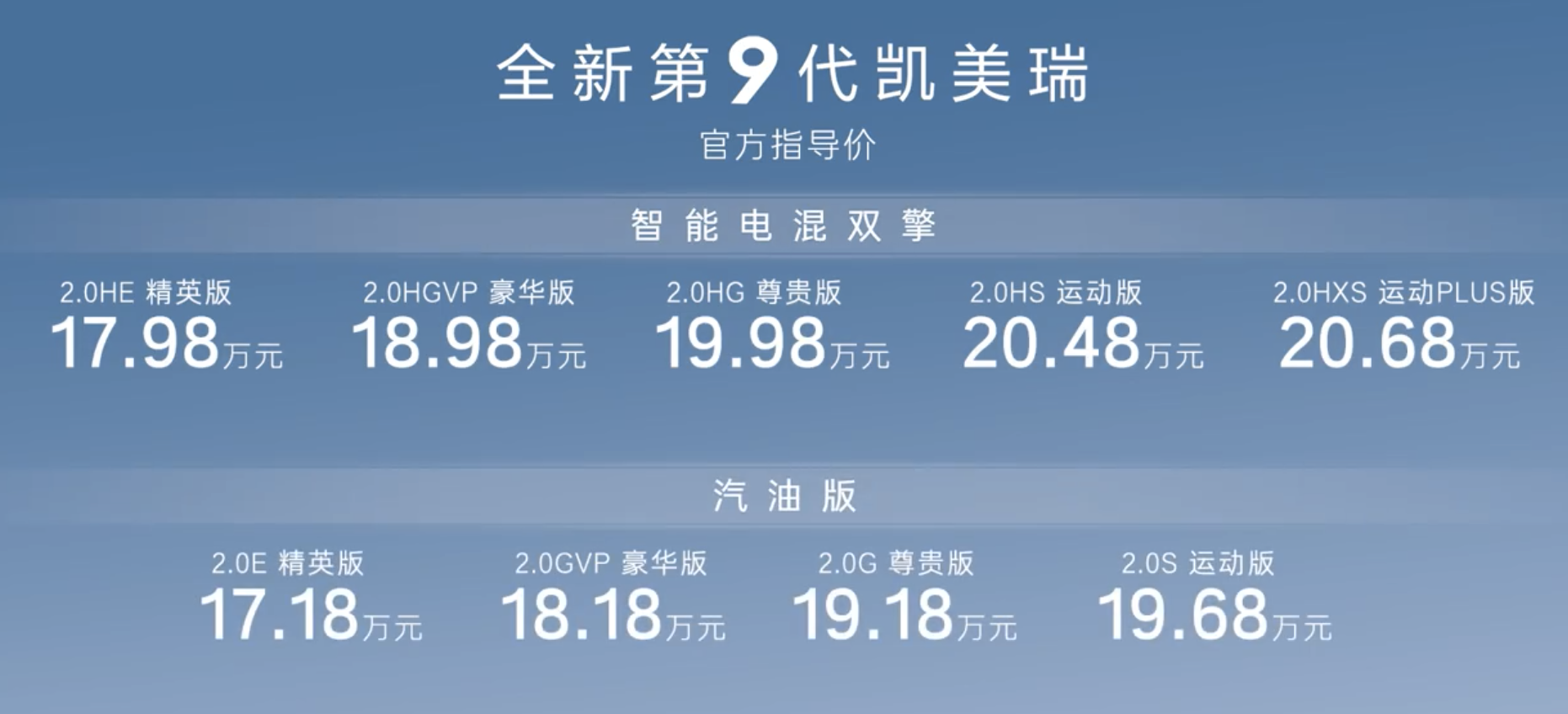 3月6日,广汽丰田宣布第9代凯美瑞正式上市,官方指导价为17.18万元起。
