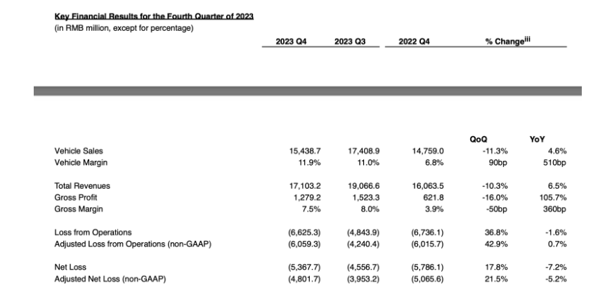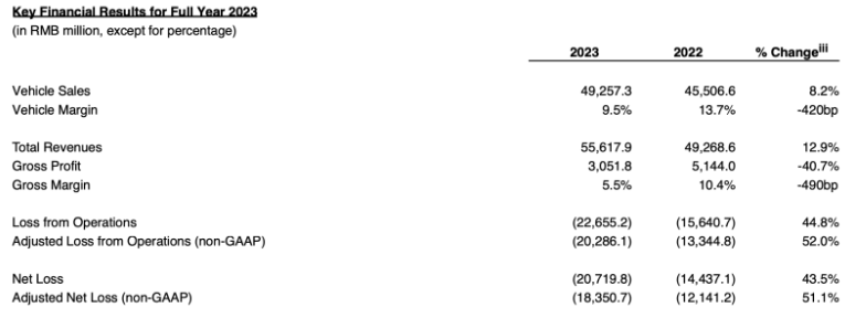 3月5日,蔚来(09866.HK)交出2023年第四季度及全年业绩答卷。年内,其总营收同比增长12.9%至556.2亿元,创历史新高;整体毛利率约为5.5%,净亏约207.2亿元。截至年底,蔚来现金储备达到约573亿元,较三季度末增加121亿元。