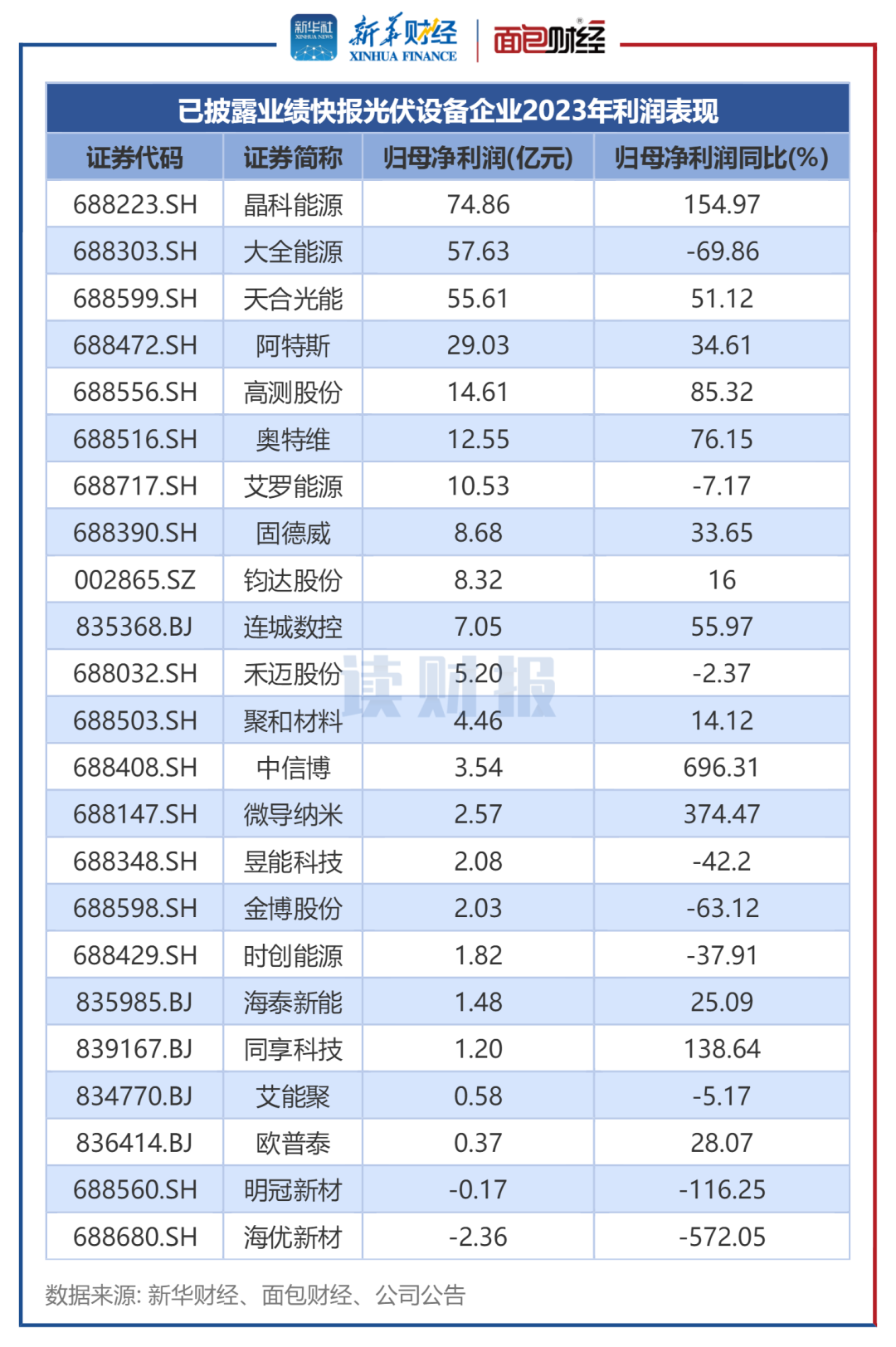 23家披露业绩快报,晶科能源、大全能源利润居前 海优新材、明冠新材亏损