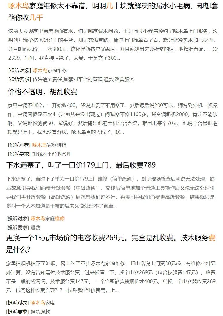 目前,网络上有关啄木鸟的“避雷帖”层出不穷,如维修人员态度恶劣,专业度低等。