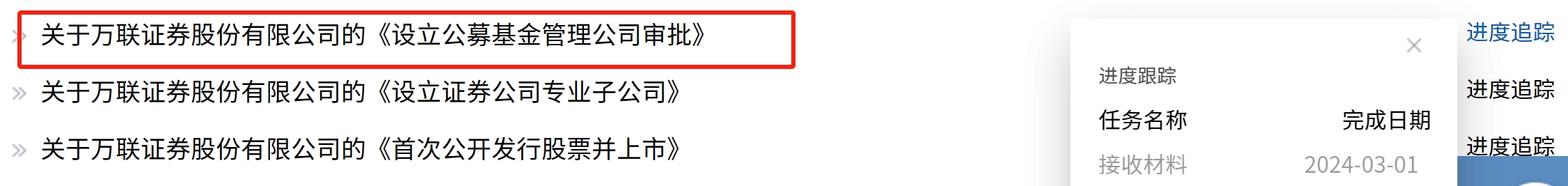 2023年7月,万联证券曾递交公募基金公司设立申请材料,并于当月17日获证监会接收。但随后不久,上述申请便从证监会官网撤下。