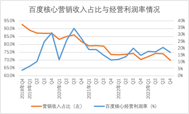 百度以搜索的营销收入起家,该业务赚钱简单直接,具有高利润低成本的特点,在企业从营销主导向AI化转型道路中,大概率就对损益表造成波动。