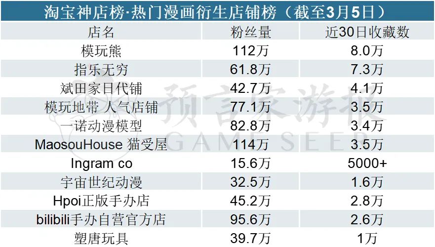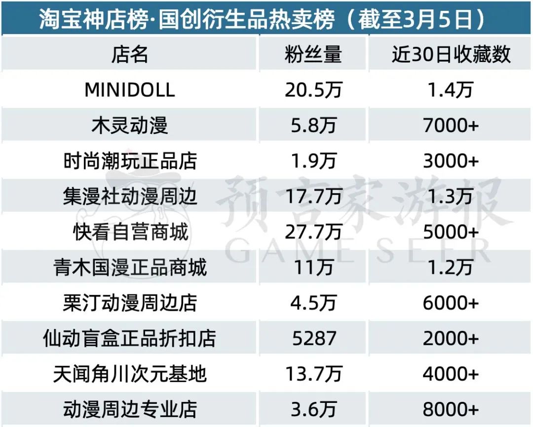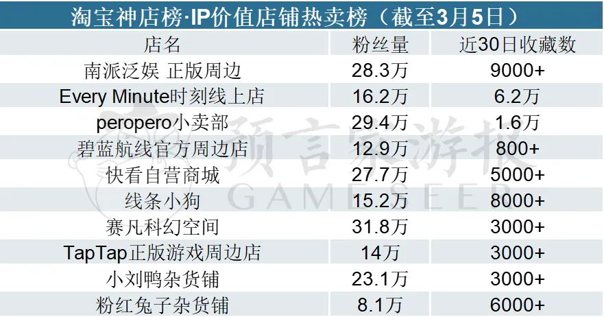 peropero小卖部、碧蓝航线官方周边店、快看自营商城和TapTap正版游戏周边店均有在榜,这些商铺都拥有坚实的二次元粉丝基础。