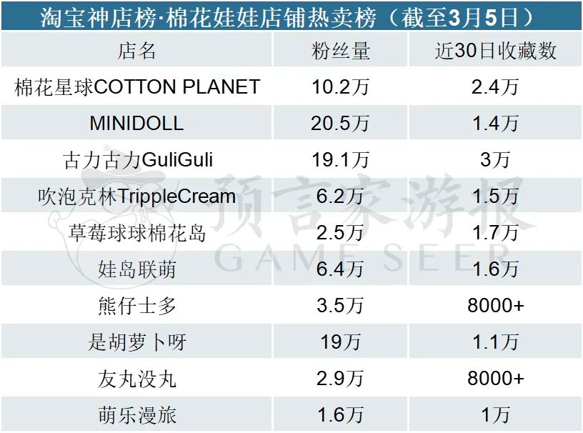 吹泡克林TrippleCream屈居第四,其余在榜店铺分别是:草莓球球棉花岛、娃岛联萌、熊仔士多、是胡萝卜呀、友丸没丸和萌乐漫旅。