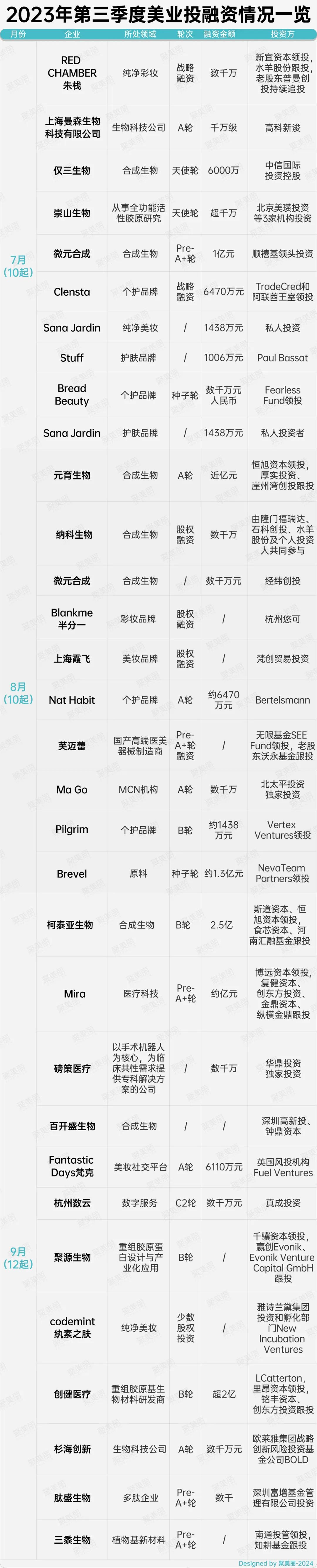 譬如,轻医美连锁机构秋涛美肤获得560万元的天使轮融资;蛋壳肌因获得数千万元人民币天使轮融资,投资方由梅花创投领投,天图资本、惟一资本等跟投。
