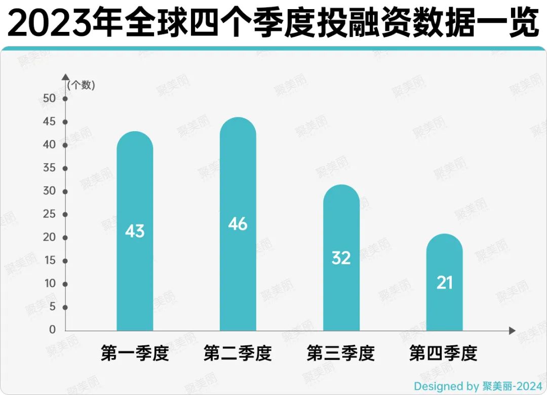 聚美丽通过整理从不同季度以及投资金额等来看,化妆品行业投融资有着不同的数据呈现。从时间上看,去年每个季度的投融资是在逐步减少;从金额上来看,2023年全球亿元级别投融资共有19起。