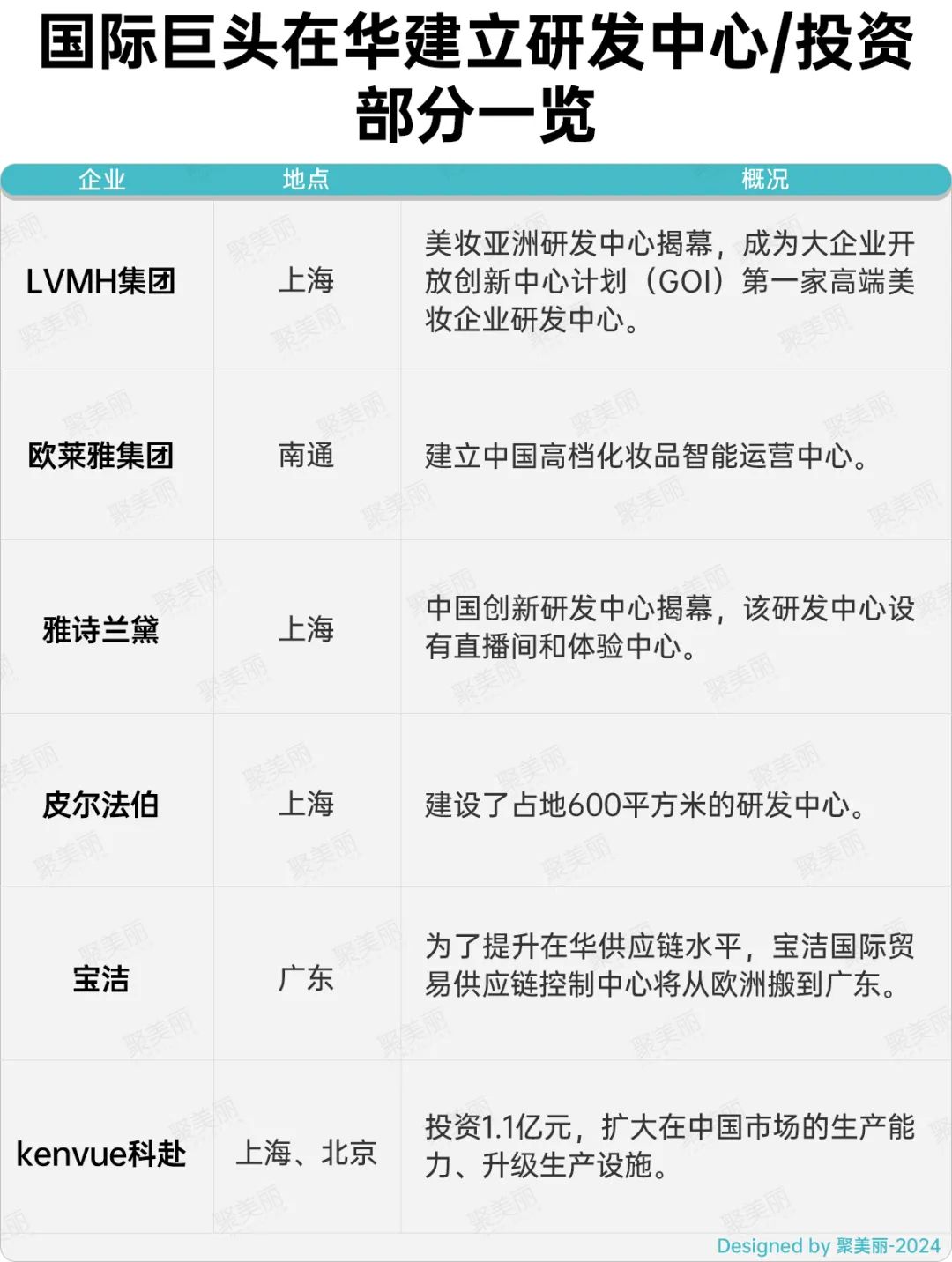 中国市场的潜力还体现在外资美妆企业在华加入大投资力度,具体来看,外资在华不仅持续加大研发创新基建投入,布局研发中心,还如上文所言瞄准本土品牌、技术领域、上游企业等进行投资。