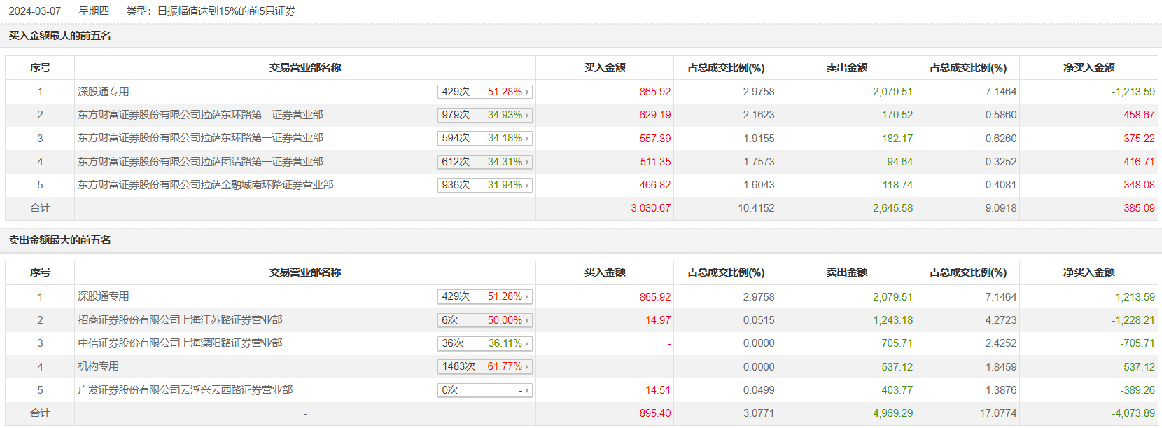 岭南控股3月7日涨3.68%,龙虎榜数据显示,上榜营业部席位全天成交8595.52万元,占当日总成交金额比例为29.54%。其中,买入金额为3060.16万元,卖出金额为5535.36万元,合计净卖出2475.21万元。