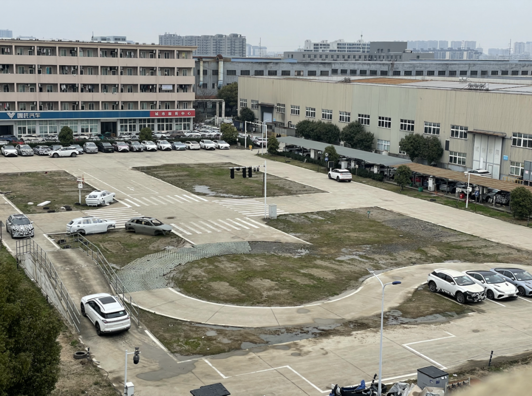 哪吒在桐乡共有南、北两个厂区,占地约400亩。南面的厂区主要是研发验证中心、试制车间、测试场地和员工宿舍。3月6日工作时间,几辆试验车在测试场地绕圈,测试车辆爬坡、过弯、喇叭等功能,有的车身贴满迷彩伪装。沿街能看到停放哪吒GT、哪吒S等车型。北面的厂区承担着哪吒的整车制造任务,规模要大不少。