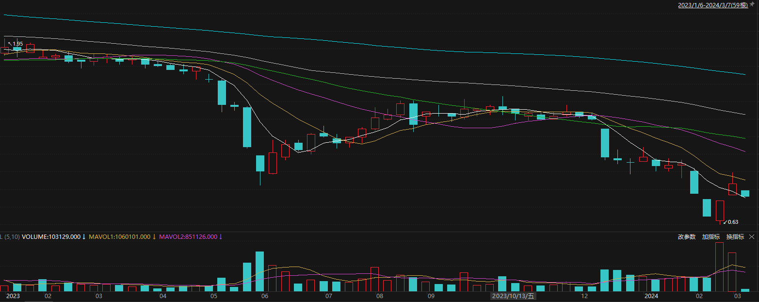 界面新闻注意到,2024年1月30日公司股价跌破1元/股,此后更连收8个跌停板,收盘价最低跌至0.66元/股。