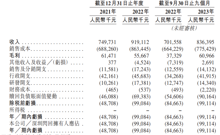 数据显示,2021年至2023年前9月(以下简称“报告期内”),闪回科技分别亏损4870.8万元、9908.4万元、9911.4万元,不到两年时间里公司累计亏损为2.47亿元。