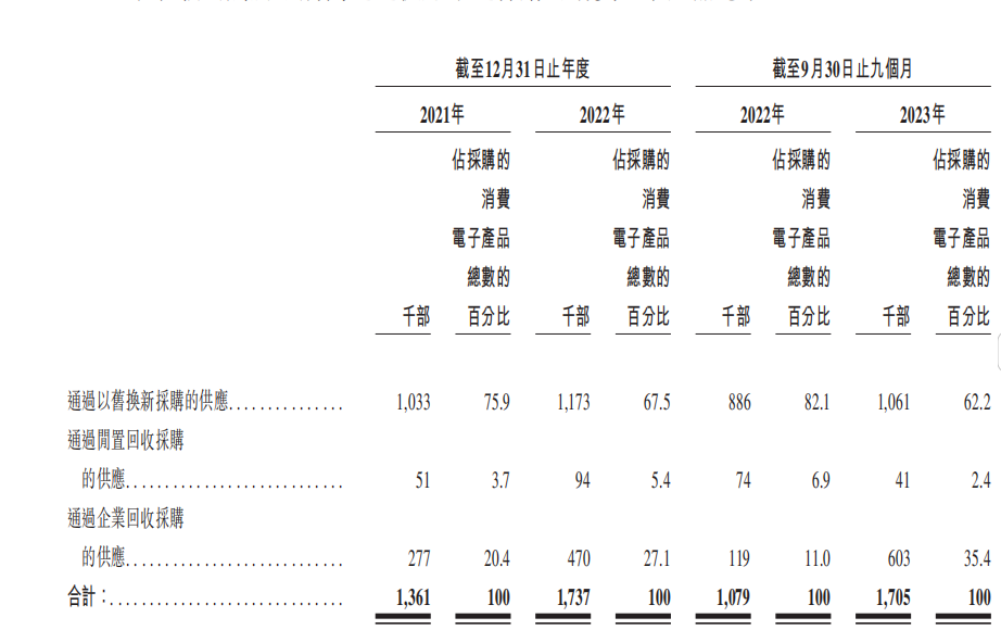 招股书显示,闪回科技二手手机的获取主要来源于线下以旧换新、企业客户回收采购供应以及闲置回收采购供应三部分。其中线下以旧换新以及企业回收采购供应是公司二手手机主要来源,2022年占比分别为67.5%、27.1%。