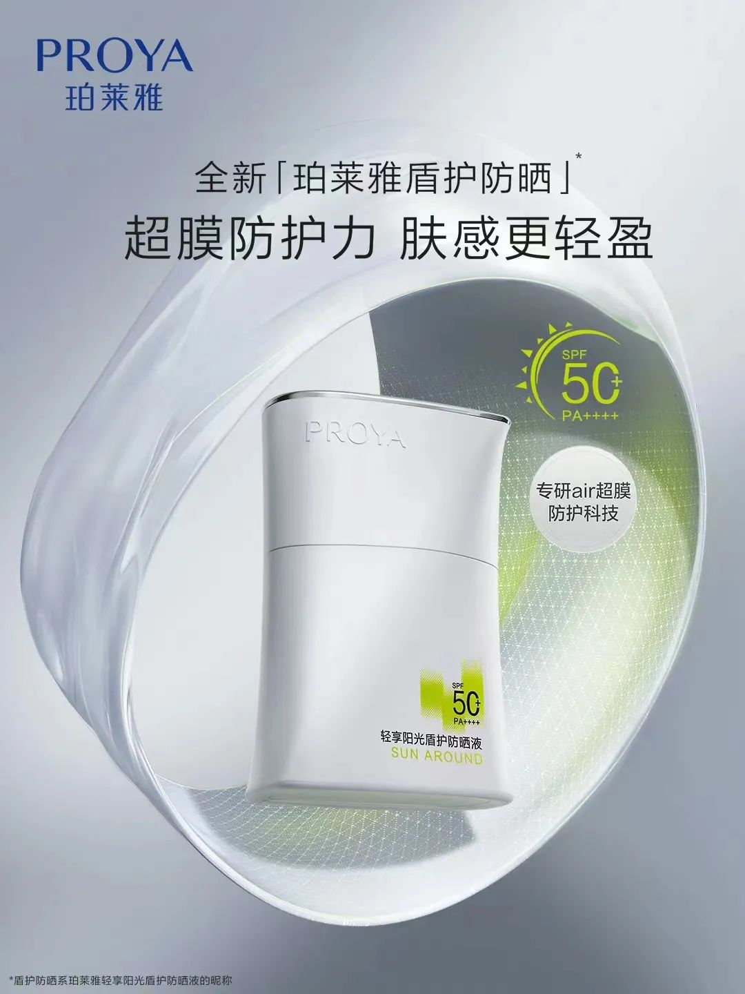 珀莱雅近期上市的盾护防晒霜就在“防晒膜”上单点突破,应用了珀莱雅全新防晒专研 “air超膜防护科技”,达到真实防晒力。