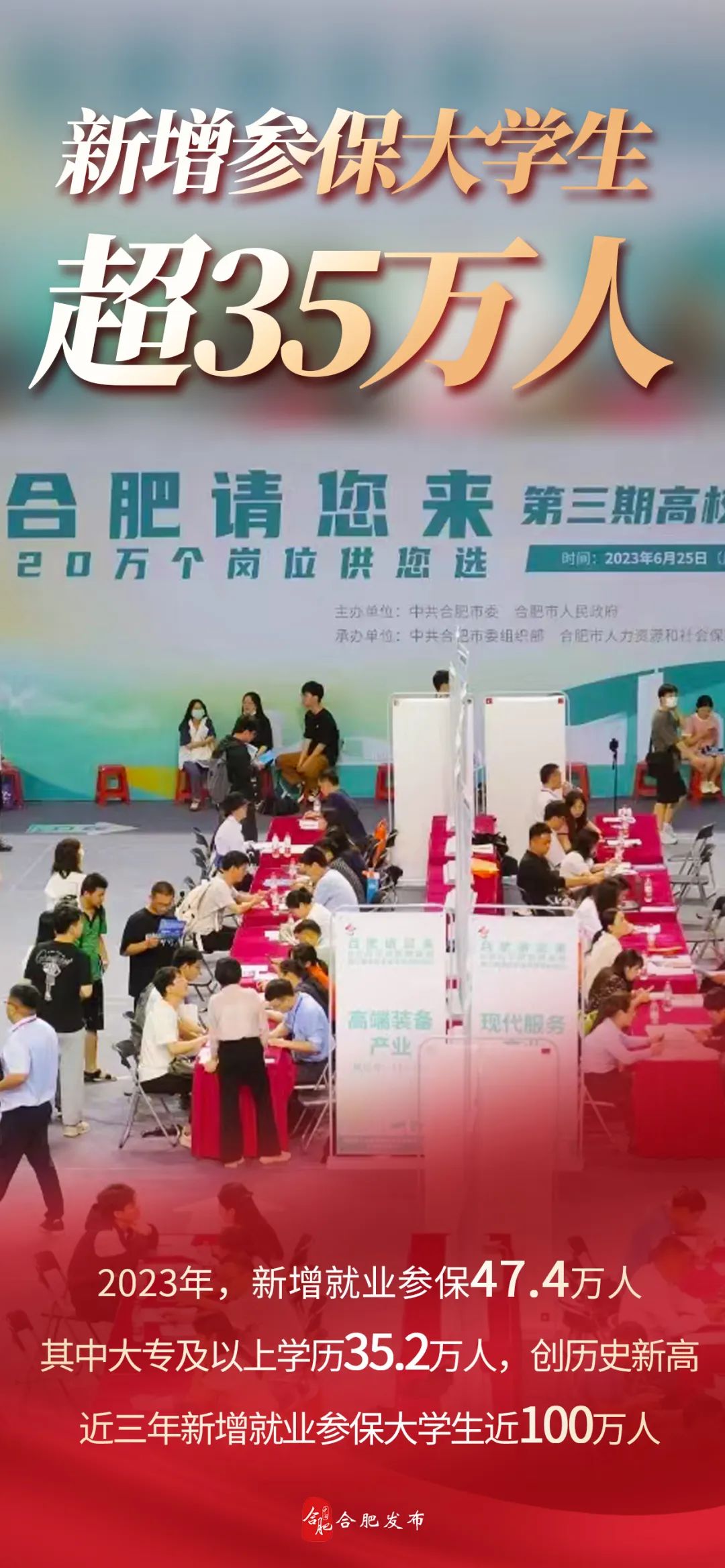 新增参保大学生超35万人。2023年,全市新增就业参保47.4万人,其中大专及以上学历35.2万人,同比增长16.7%,创历史新高,近3年新增就业参保大学生近100万人。