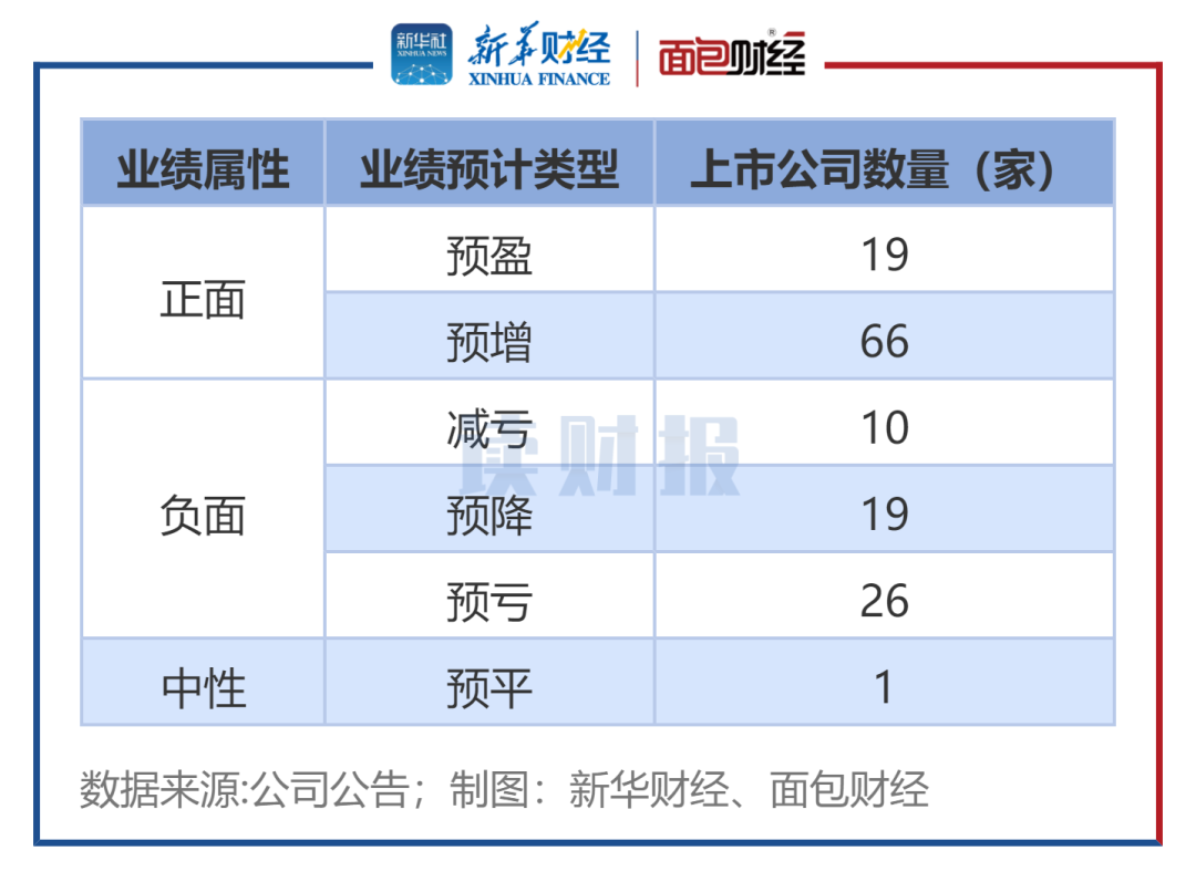 其中,业绩偏正面(包括预增、预盈)的企业合计为85家,占比约60%。业绩偏负面(减亏、预降、预亏)的企业合计55家,占比约39%。业绩偏中性(预平)的企业有1家。