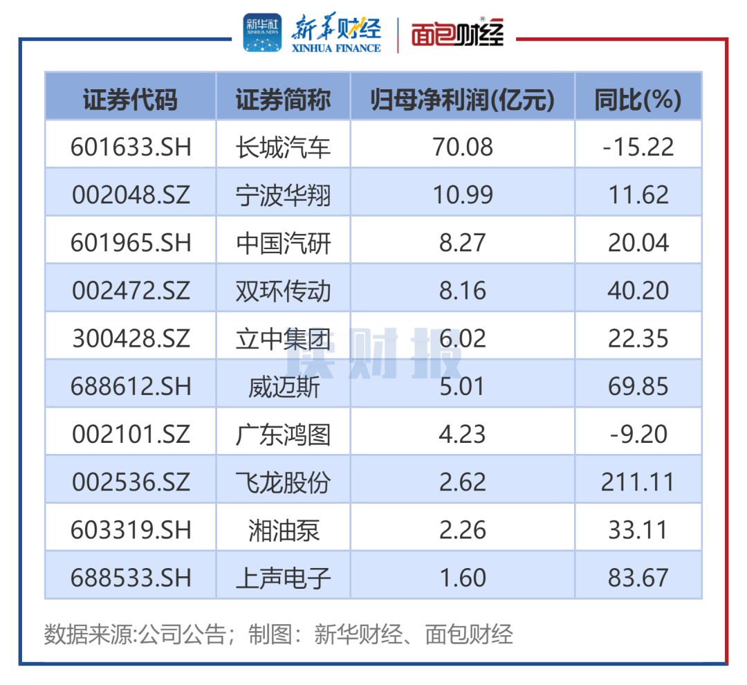 业绩快报:九成公司实现盈利,长城汽车、广东鸿图等归母净利润同比下滑