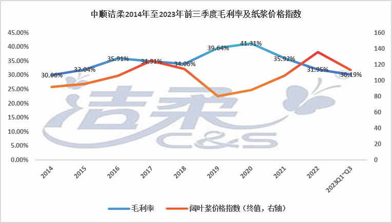 从2015年至2022年中顺洁柔价量的变迁来看,在一片红海的生活用纸市场中,价格中枢整体下移,增长主要依赖规模化,而规模化却面临着上游纸浆成本波动的困扰,且下游的竞争导致转嫁困难。